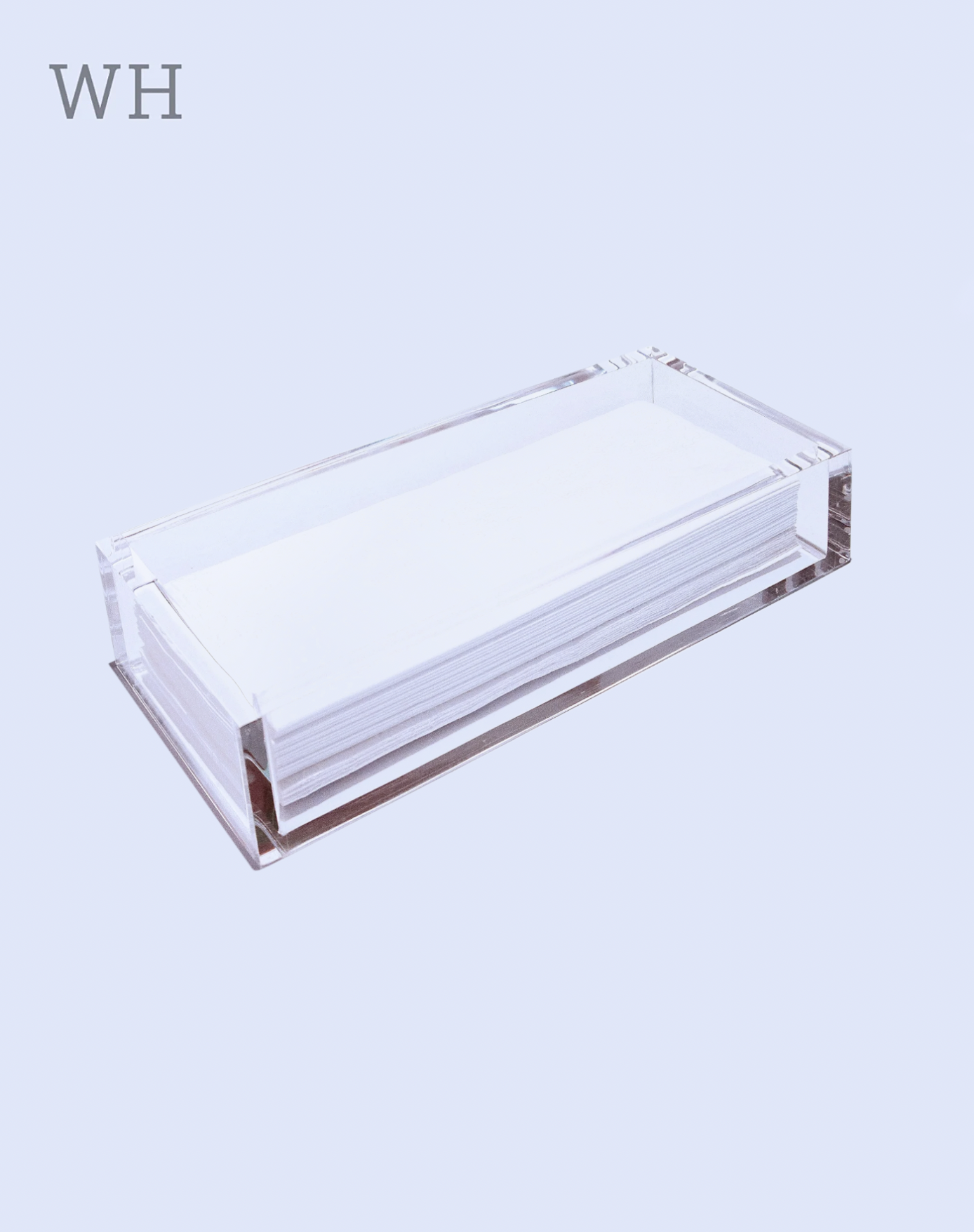O porta papel toalha em acrílico dá um aspecto clean na organização além de facilitar a retirada para secar as mãos.